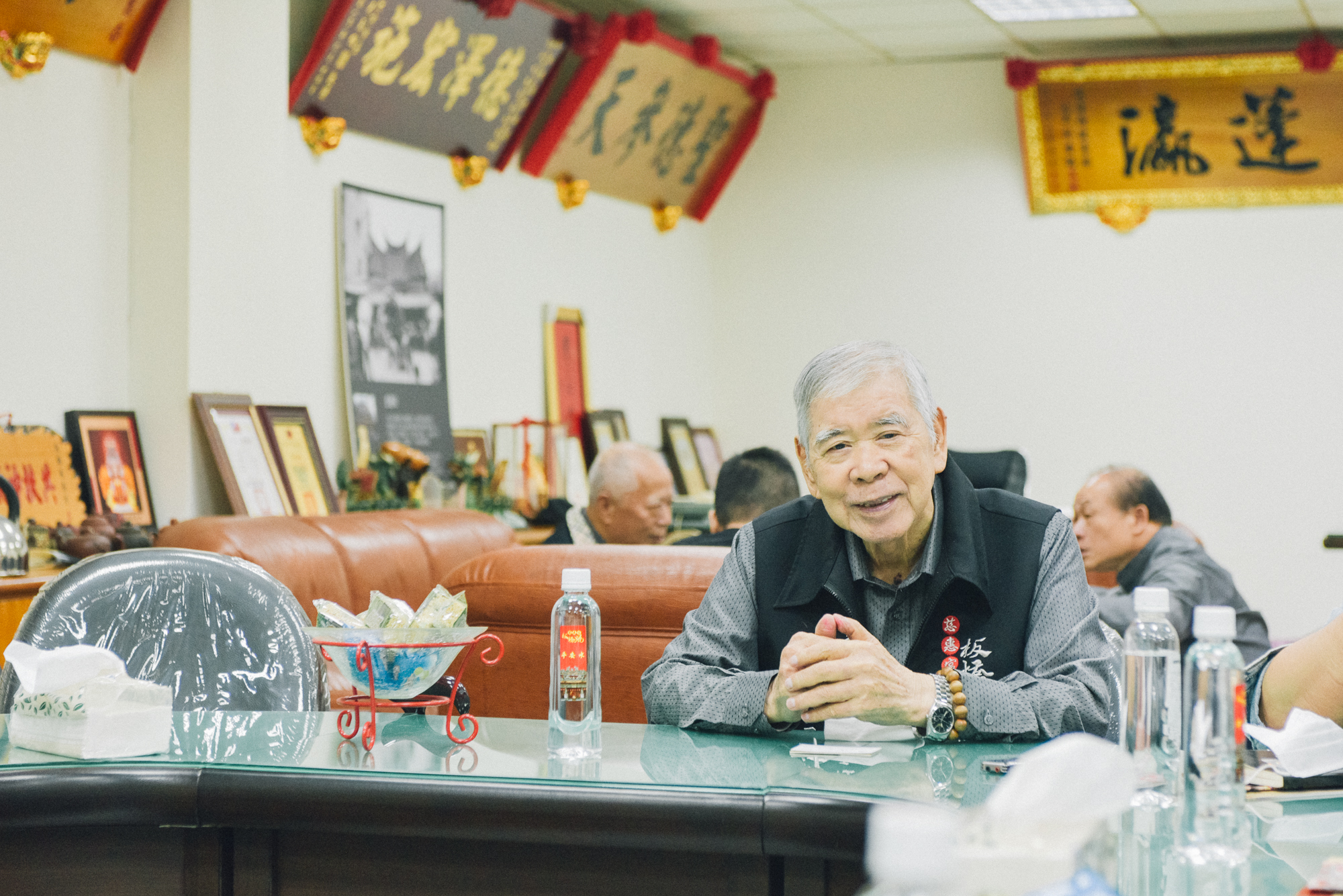 採訪這天,大殿內正在舉行「天上聖母得道禮斗法會」,銅鈸與嗩吶的聲音震天價響,讓人忍不住也想湊近看熱鬧。把下半輩子35年歲月奉獻給板橋慈惠宮的管理委員會主任委員許三郎,正拄著拐杖親身參與,仔細盯著法會過程中的所有細節,即便已經高齡82歲,仍然精神奕奕地親力親為。