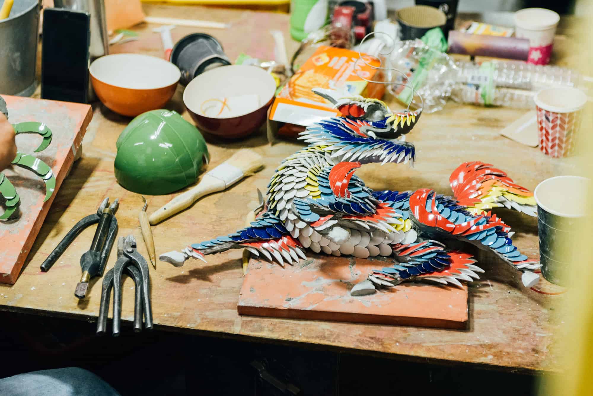 師傅必須細心修剪陶片的大小與輪廓,讓其能吻合各種想製作的物件外型。很像是剪貼,但製作的物件是立體的。